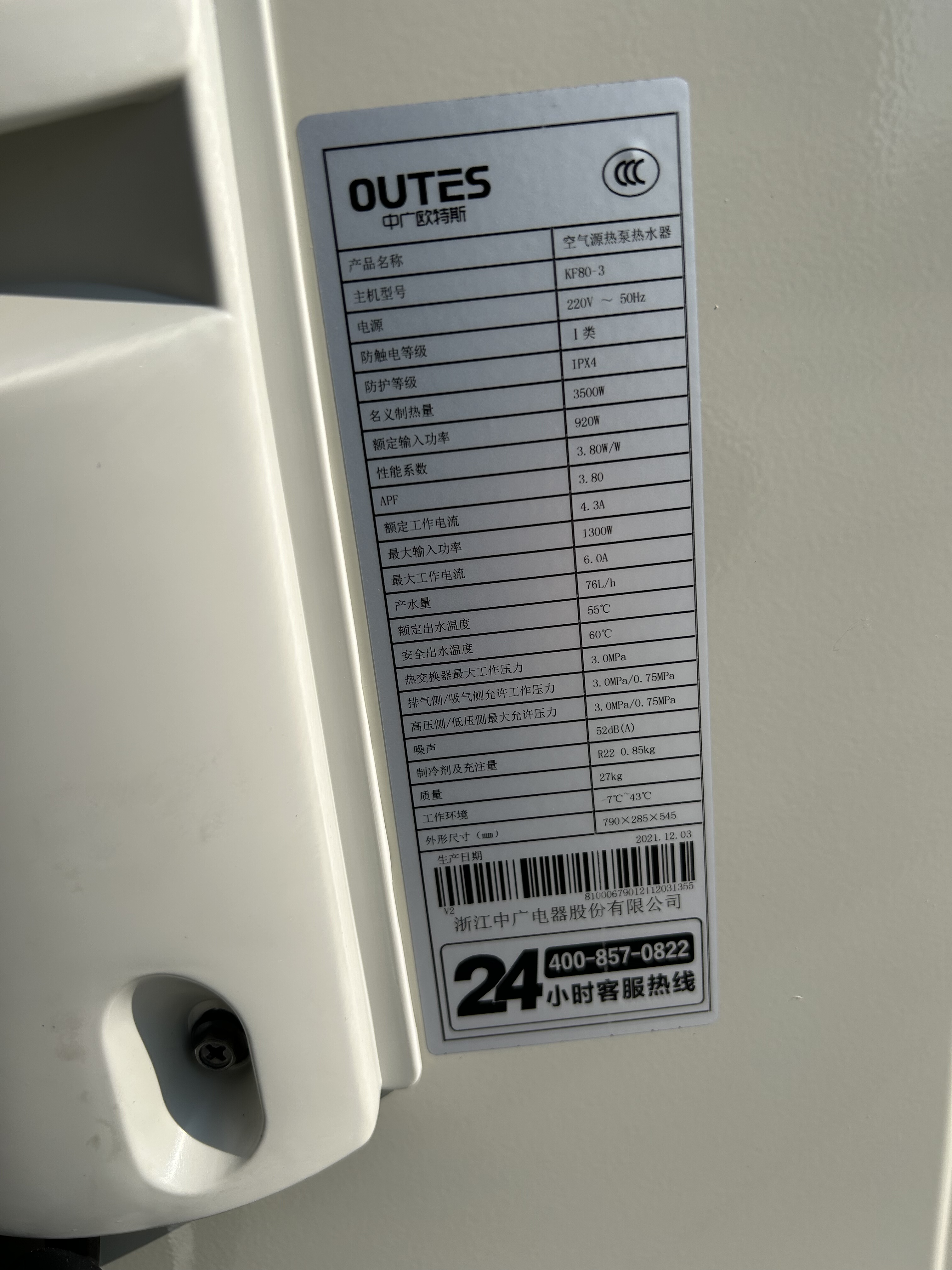 > 全新二手中广欧特斯(outes)空气能热水器 家用150-200L