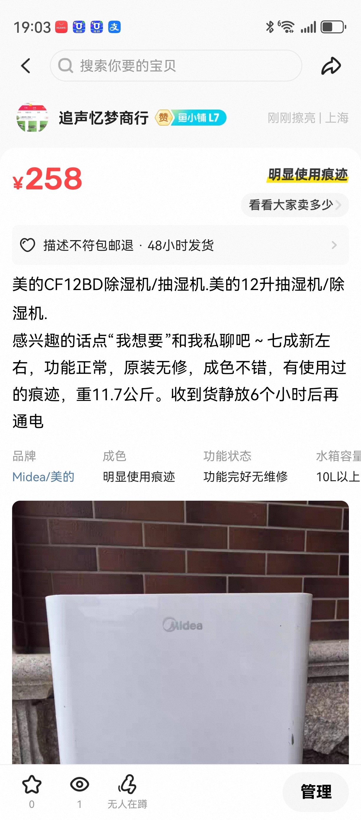 二手原装美的CF12BD除湿机/抽湿机.美的12升抽湿机/除湿机.